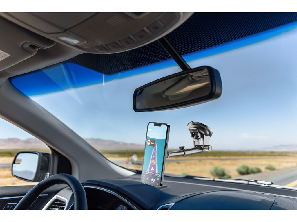 Cellular Line Drive TOUCH MAG bilholder er utviklet for å gi en pålitelig og praktisk måte å sikre mobiltelefonen på mens du kjører. Holderen har et elegant, selvklebende design som gjør den egnet for montering på dashbordet. Den magnetiske funksjonen gjør det enkelt å feste og løsne enheten, noe som sikrer rask tilgang på veien. MagSafe-kompatibiliteten gjør den enda mer brukervennlig, og gir et sterkt grep som minimerer risikoen for at telefonen sklir eller faller ned under transport. Med 360° rotasjon og svingbare justeringsmuligheter får du den fleksibiliteten du trenger for optimale synsvinkler, noe som gjør navigasjonen sømløs og trygg.