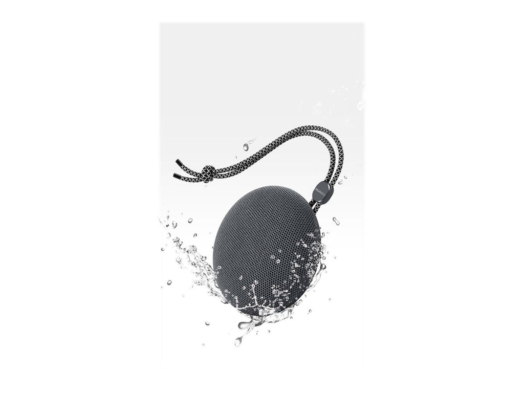 Lighter than 4 eggs, smaller & thinner than a lunch box. This wireless speaker comes with stable Bluetooth connection and braided lanyard for easy portability.
