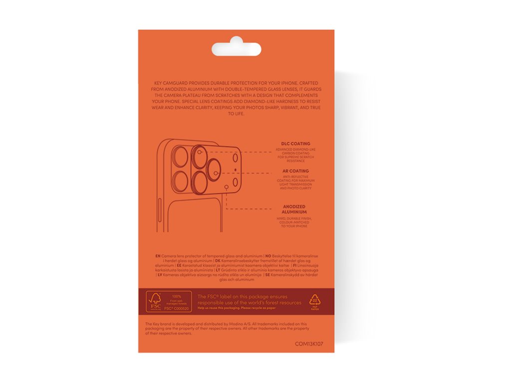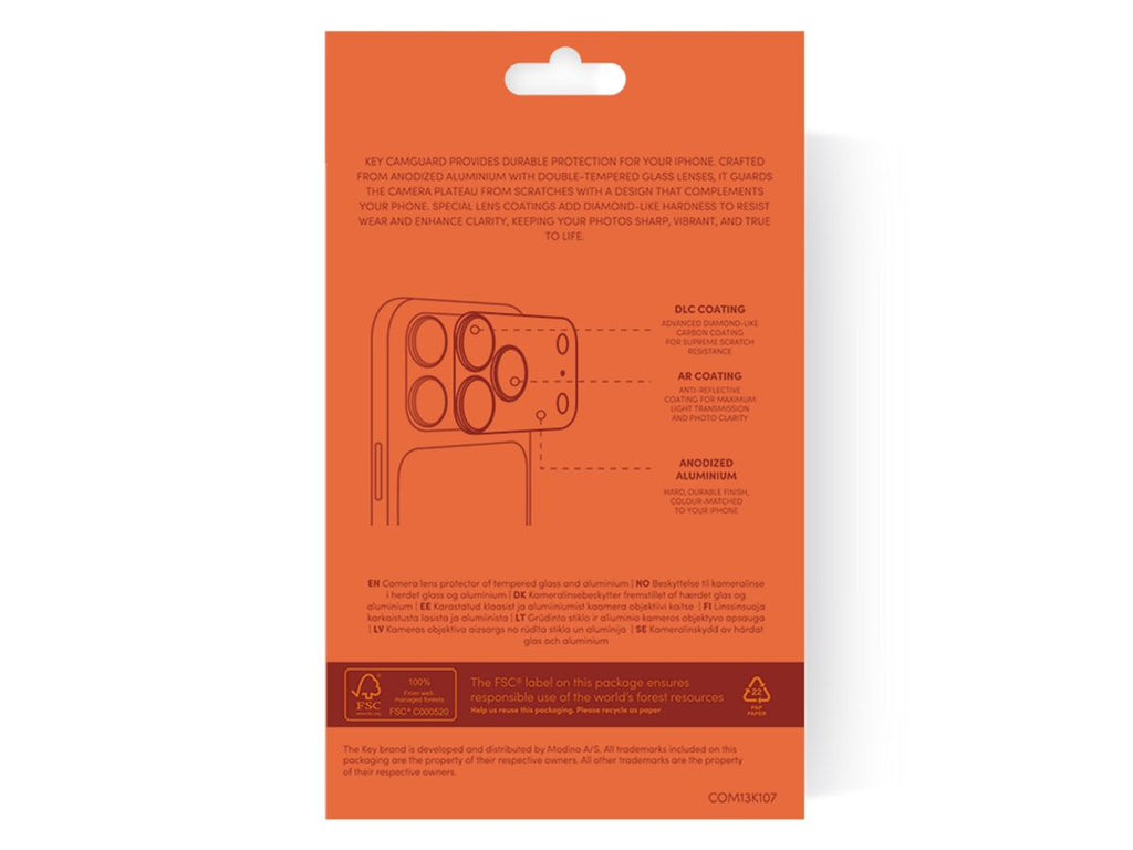 KEY CamGuard Aluminium Plate gir slitesterk beskyttelse for din iPhone. Laget av anodisert aluminium med doble herdede glasslinser, beskytter den kameraplaten mot riper i et design som harmonerer med telefonen din. Spesielle linsebelegg tilfører diamantlignende hardhet som motstår slitasje og forbedrer klarheten, slik at bildene dine forblir skarpe, livlige og naturtro.