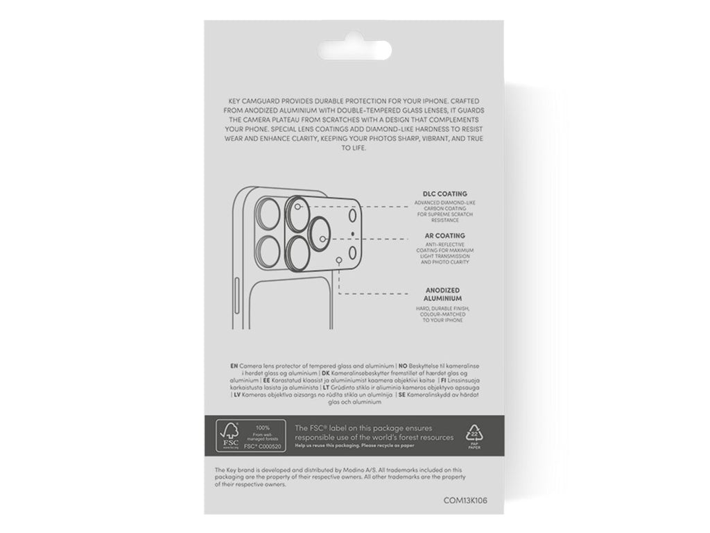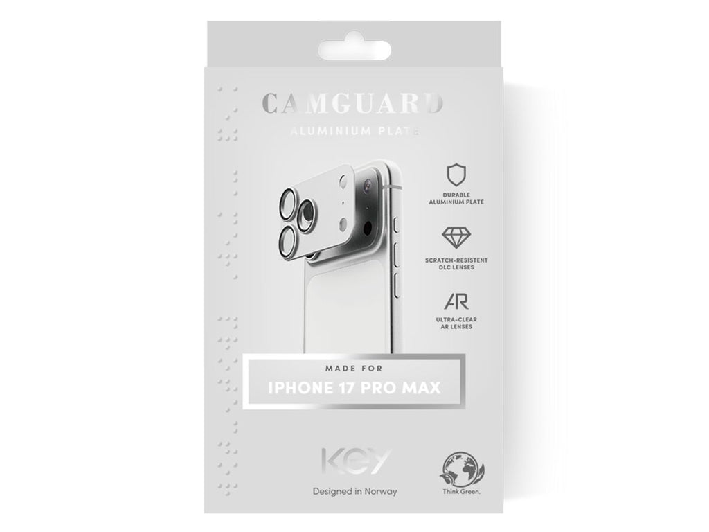 KEY CamGuard Aluminium Plate gir slitesterk beskyttelse for din iPhone. Laget av anodisert aluminium med doble herdede glasslinser, beskytter den kameraplaten mot riper i et design som harmonerer med telefonen din. Spesielle linsebelegg tilfører diamantlignende hardhet som motstår slitasje og forbedrer klarheten, slik at bildene dine forblir skarpe, livlige og naturtro.