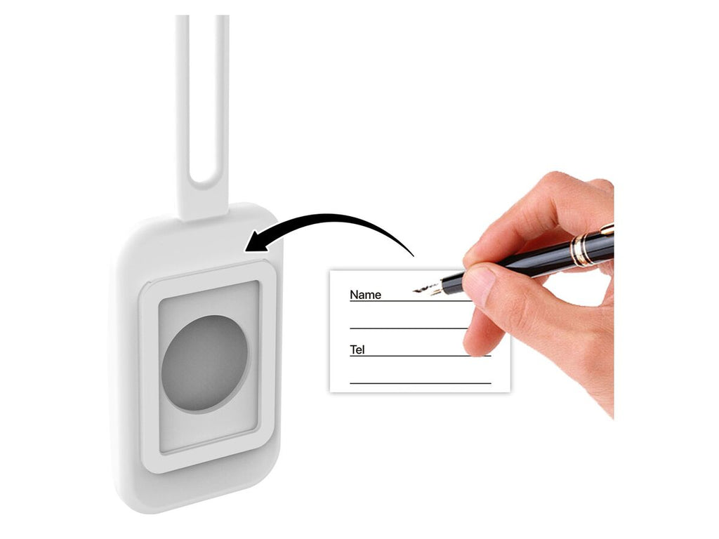 I pakken medfølger en praktisk og robust baggasjetag i silikon (med navnelapp) som er designet for å passe perfekt til din MiTag.