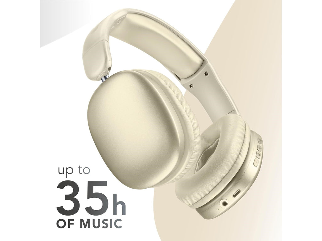MAXI3 er Music Sounds trådløse over-ear-hodetelefoner, utviklet for deg som ønsker en kompromissløs lydopplevelse. Utstyrt med Active Noise Cancelling-teknologi blokkerer de forstyrrende lyder og gir krystallklar og omsluttende lyd, uansett hvor du befinner deg. Det moderne designet, med øreklokker i metalleffekt og elegante detaljer, kombinerer funksjonalitet og stil – perfekt både til jobb og fritid.