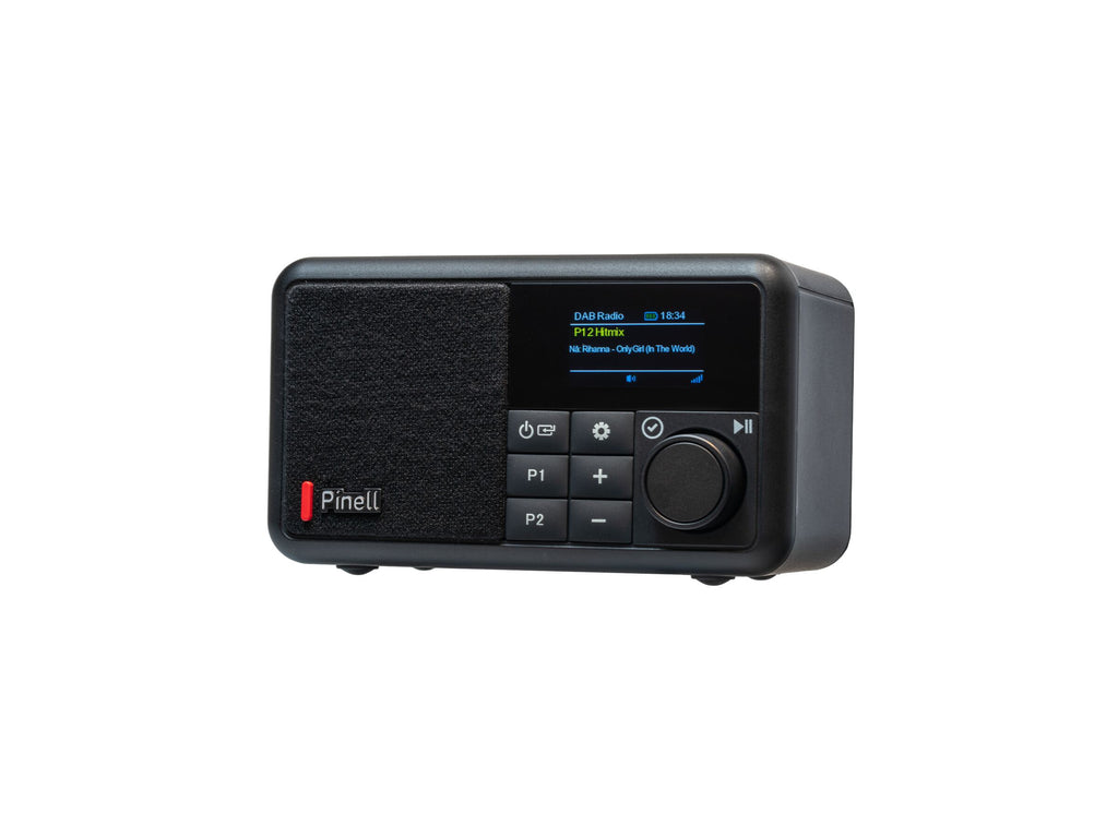 Pinell Compact er en liten radio med stort lydbilde. Den tar liten plass i vesken og spiller i 8 timer på en lading. Lytt på digital radio eller bruk bluetooth for strømming av musikk /podcast. Radioen har også praktiske funksjoner som alarm, klokke og mulighet for 40 forhåndsinnstilte kanaler på DAB og FM.